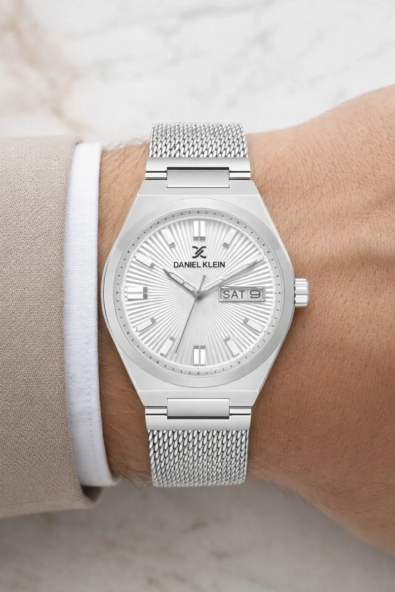 Modern çizgileri zamansız şıklıkla buluşturan Daniel Klein erkek kol saati, günlük kullanımda olduğu kadar klasik kombinlerde de güçlü bir stil tamamlayıcısıdır. Paslanmaz çelik kasa ve bilezik yapısı, dayanıklılığı estetikle birleştirirken; güneş ışını (sunburst) dokulu kadranı saatin her açıdan canlı ve derin görünmesini sağlar.