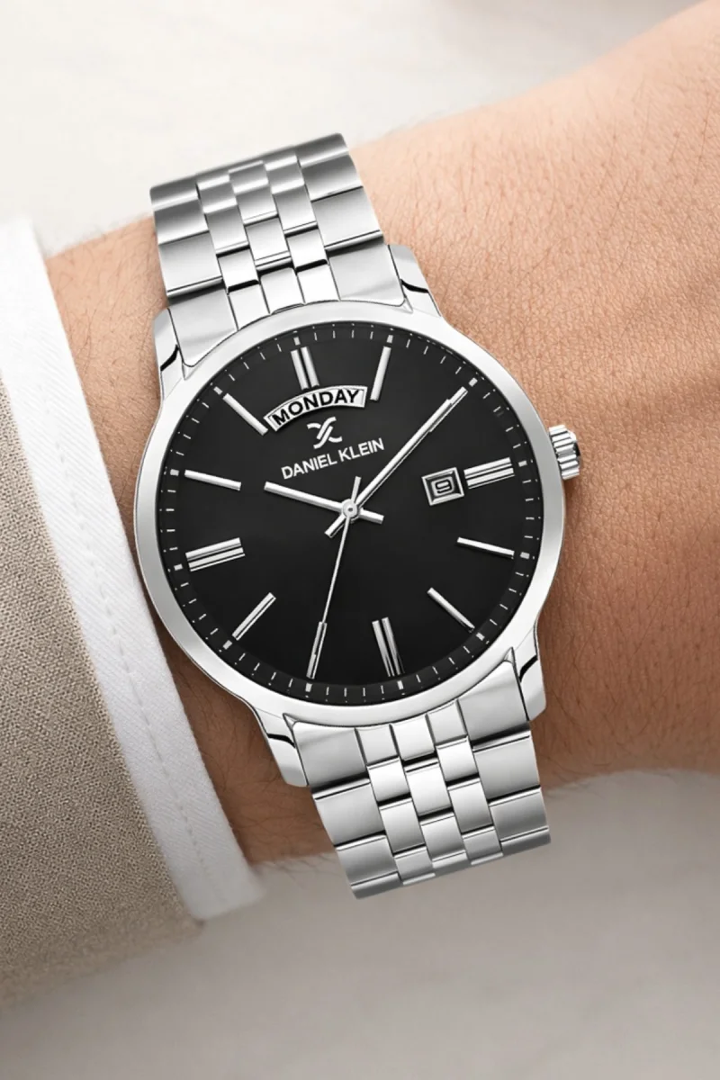 Daniel Klein Çelik Kordon&Kasa Takvimli Erkek Kol Saati Bileklik Hediyeli Gümüş-Siyah zmdk1205