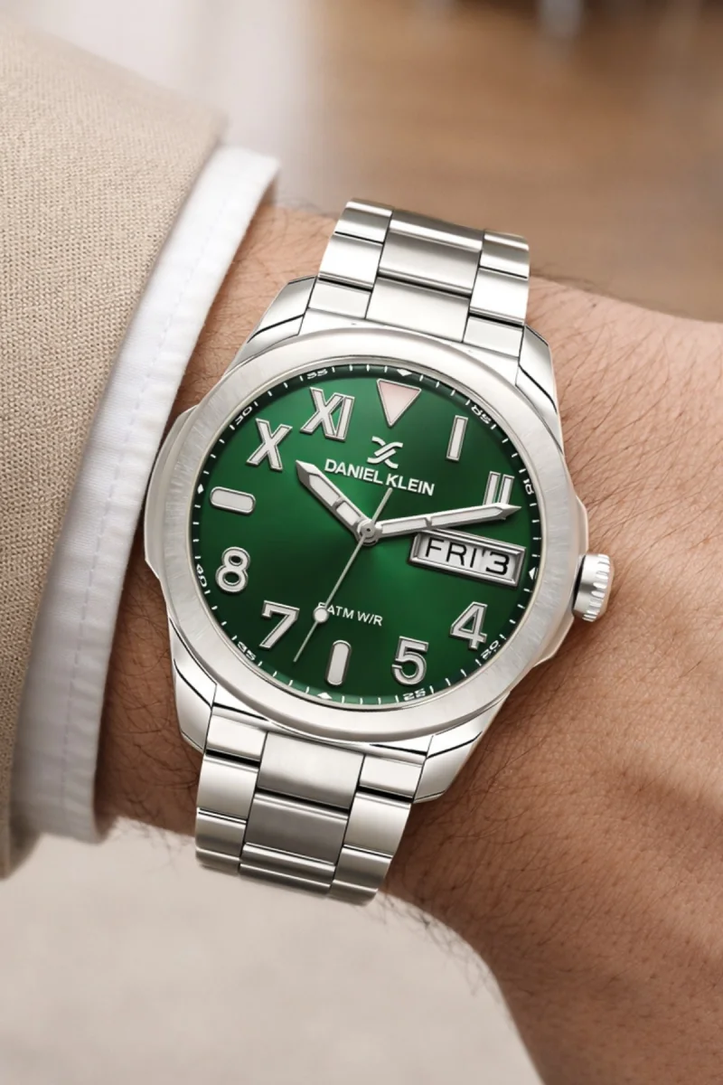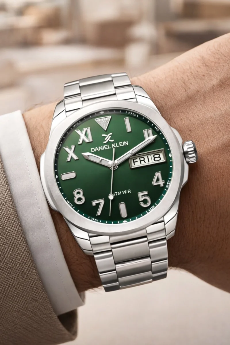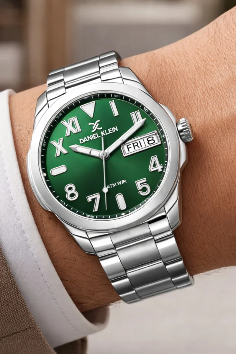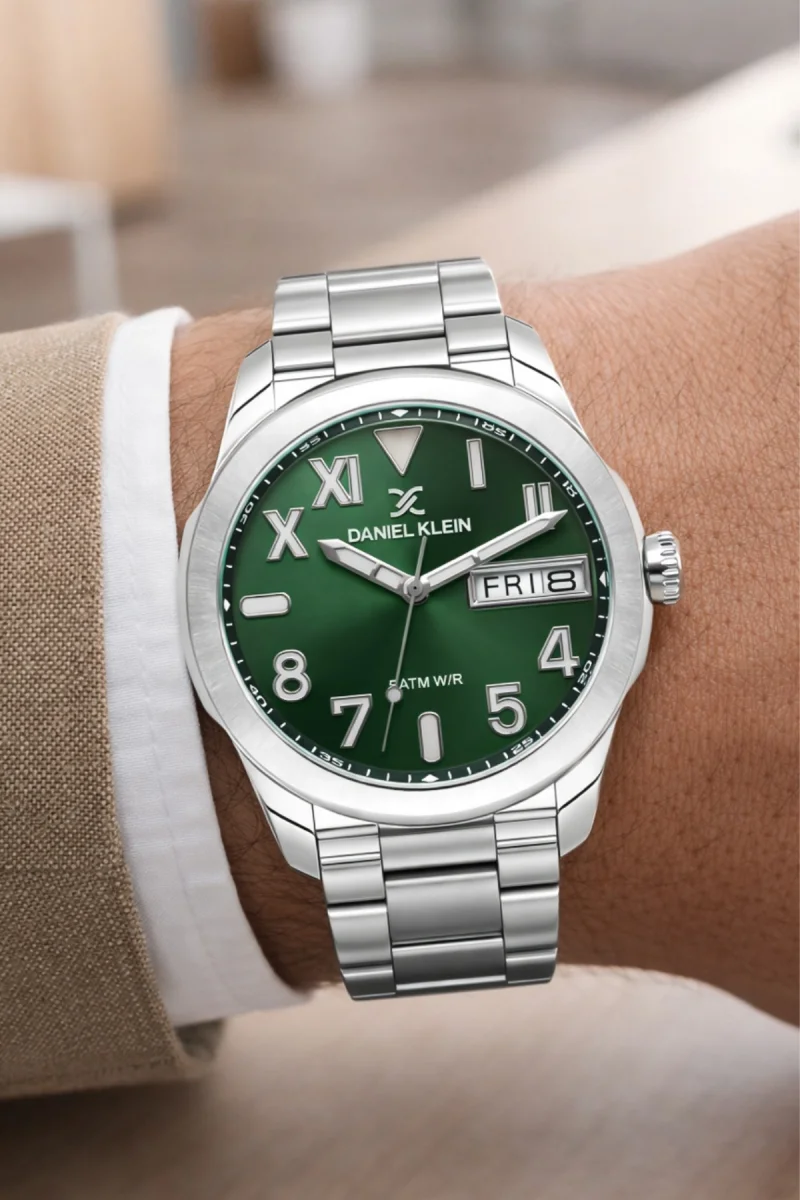 Daniel Klein Çelik Kordon&Kasa Takvimli Erkek Kol Saati Bileklik Hediyeli Gümüş-Yeşil zmdk1204