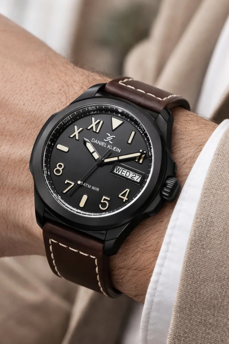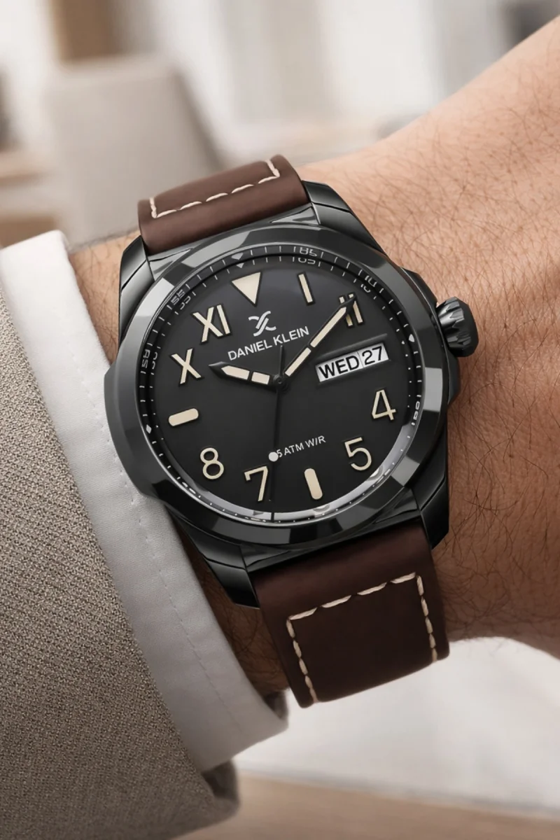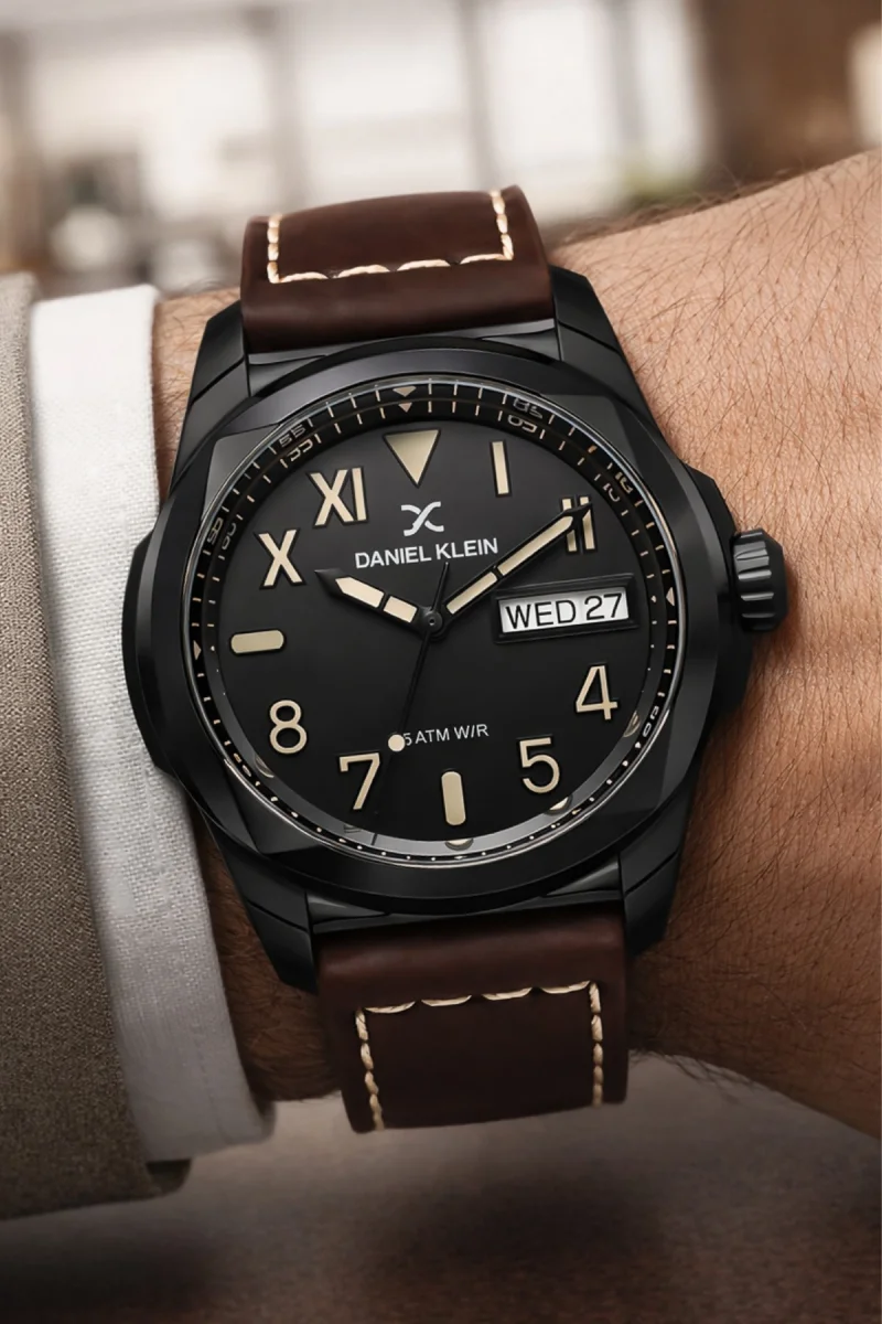 • Daniel Klein Erkek Kol Saati – Gün & Tarih Göstergeli, Deri Kordon