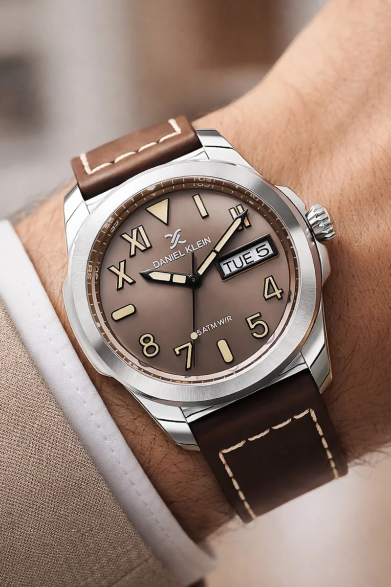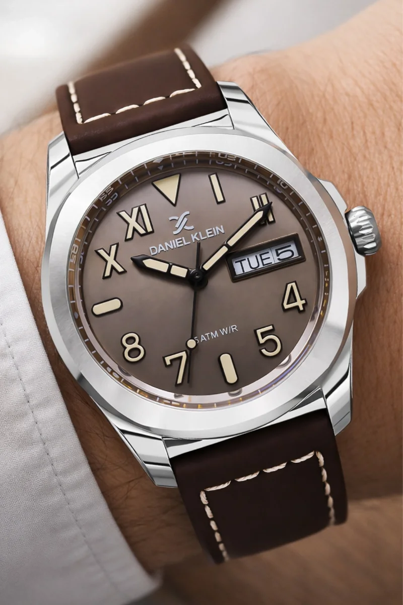 • Daniel Klein Erkek Kol Saati – Gün & Tarih Göstergeli, Deri Kordon