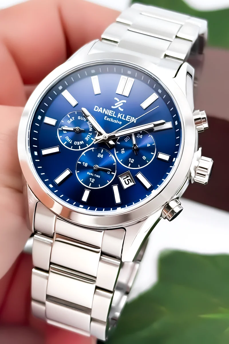 Daniel Klein Erkek Kol Saati Exclusive Çelik Kordon Bileklik Hediyesi ile Gümüş-Mavi zmdk1125