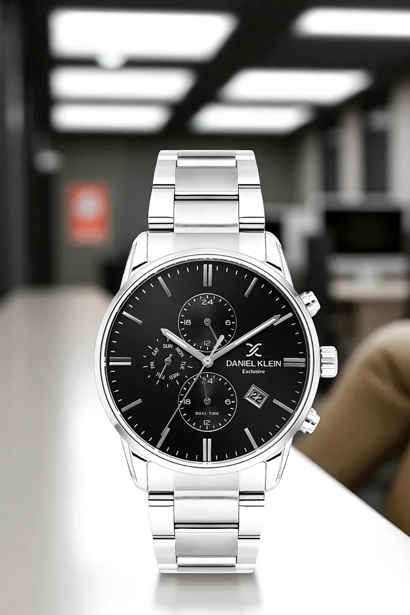 Daniel Klein Erkek Kol Saati Exclusive Çelik Kordon Bileklik Hediyesi ile Gümüş-Siyah zmdk1191