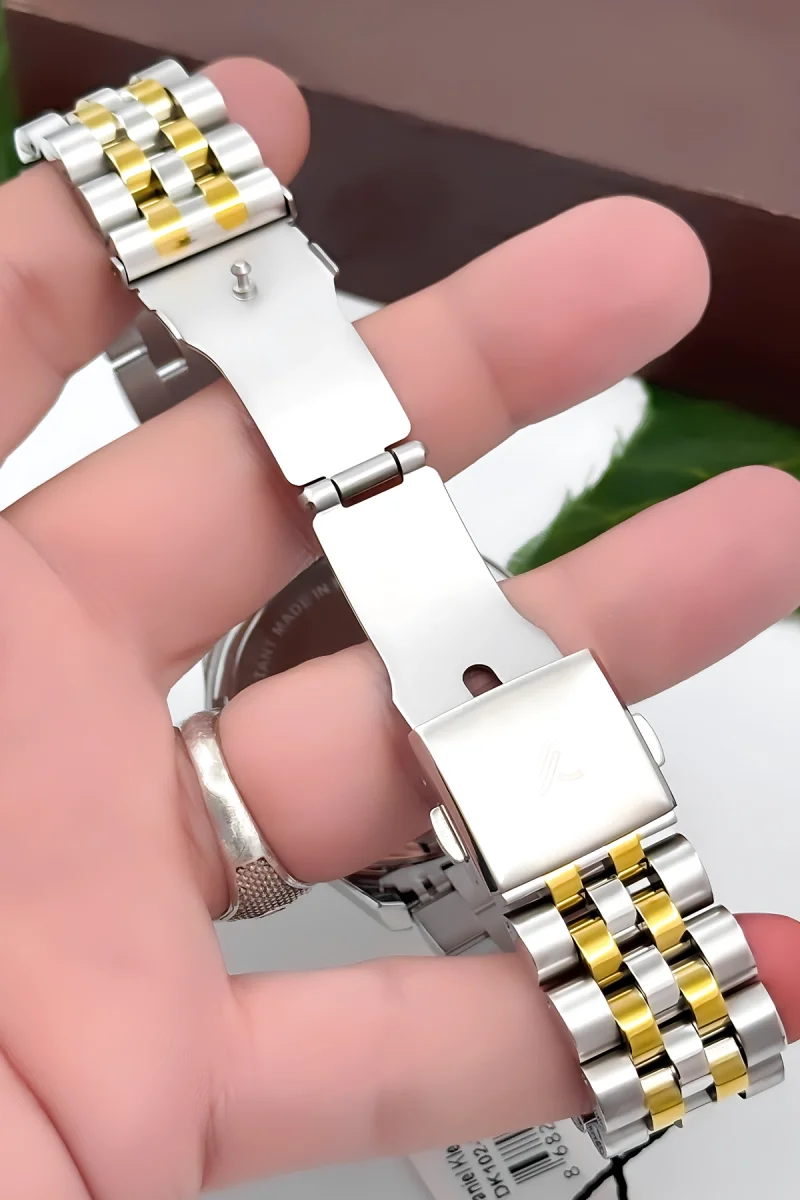 Daniel Klein erkek kol saati, zamanı şıklıkla yönetmek isteyen modern erkekler için tasarlanmıştır. Klasik çizgiler ile modern detayların buluştuğu bu özel saat, hem günlük kullanım hem de özel günler için zarif bir tamamlayıcıdır. 44MM kasa çapı ve 20MM kordon genişliğiyle bilekte güçlü bir duruş sergiler. Çelik kasa ve çift renkli (altın & gümüş) jübilee model çelik kordon, saatin hem dayanıklı hem de lüks görünmesini sağlar.