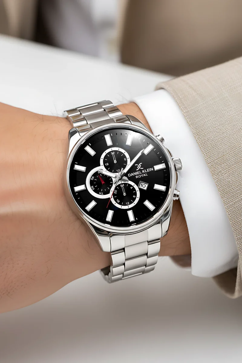 Daniel Klein Erkek Kol Saati Takvimli Çelik Kordon Çelik Kasa 3 Atm Su Geçirmez Gümüş-Siyah zmdk1143
