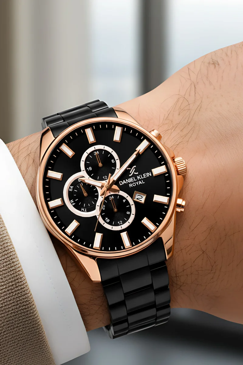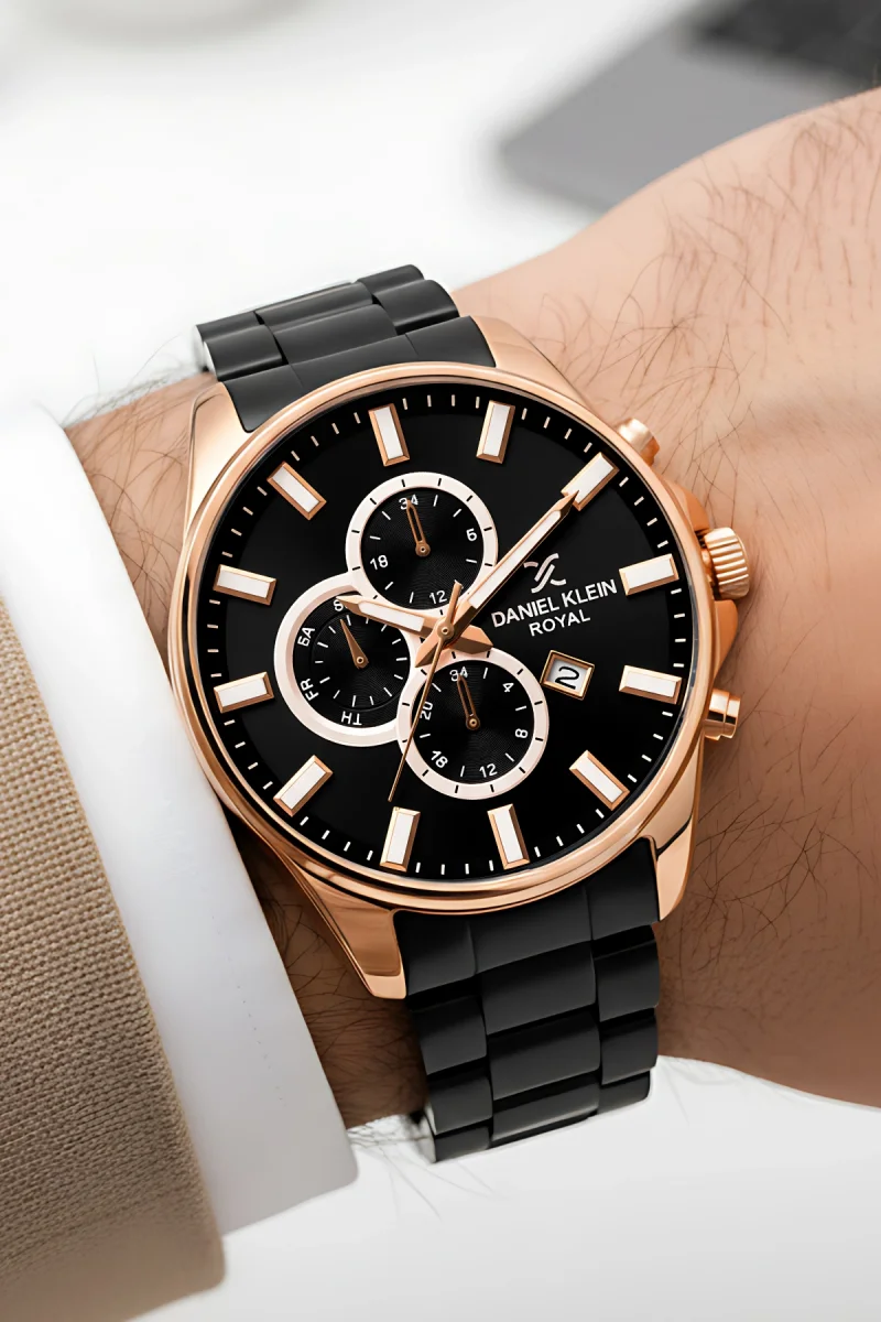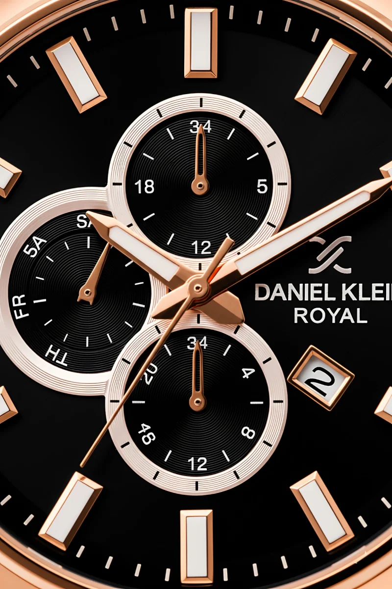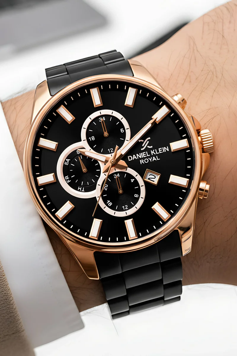 Daniel Klein Erkek Kol Saati Takvimli Çelik Kordon Çelik Kasa 3 Atm Su Geçirmez Siyah-Rose zmdk1143