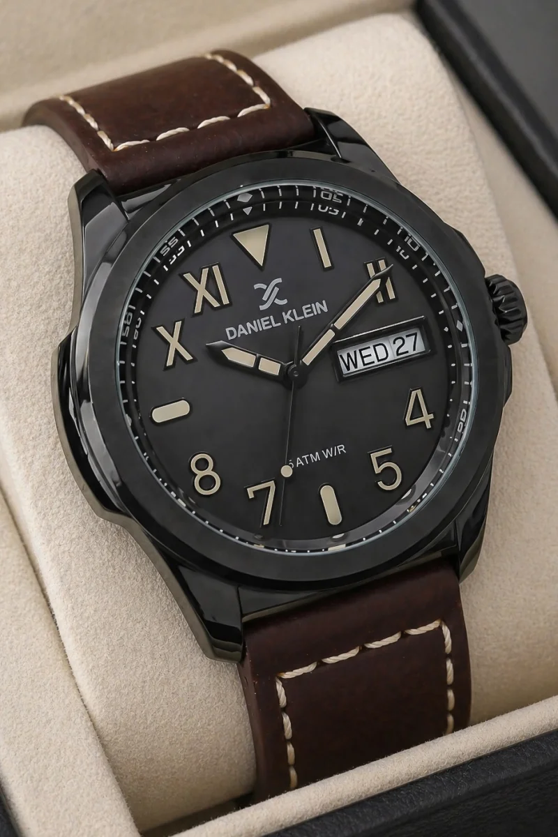 Daniel Klein Kahverengi Deri Kordon Siyah Renk Çelik Kasa Takvimli Erkek Kol Saati Bileklik Hediyeli zmdk1170