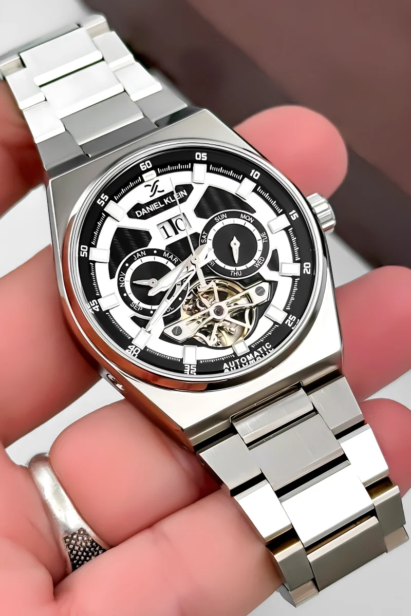 Daniel Klein otomatik erkek kol saati, çağdaş şıklıkla teknik zarafeti bir araya getiriyor. Otomatik mekanizma sayesinde kurma ihtiyacı olmadan bileğinizde yaşam bulan saat, rotor hareketiyle kinetik enerji üreterek çalışır ve üstün hassasiyet sunar