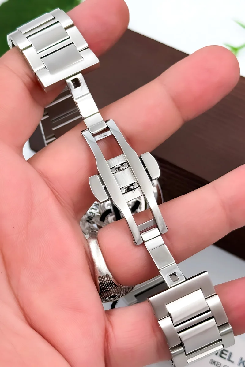 Çelik kasa ve çelik model kordon: Paslanmaz çelikten üretilen kasa ve bilezik, hem şık hem de dayanıklı bir kullanım vaat eder.