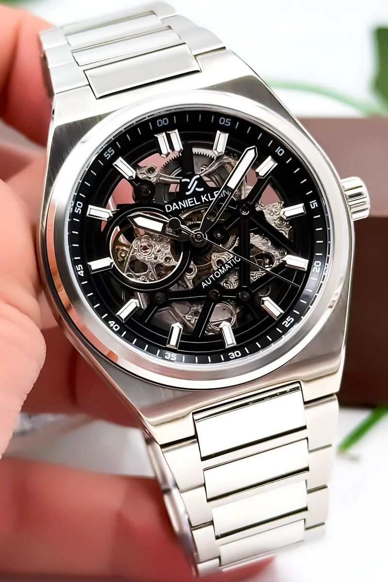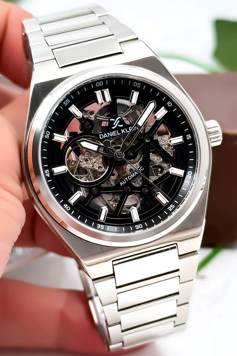 Daniel Klein Otomatik Mekanizma Çelik Kordon Çelik Kasa Erkek Kol Saati Gümüş-Siyah zmdk1197