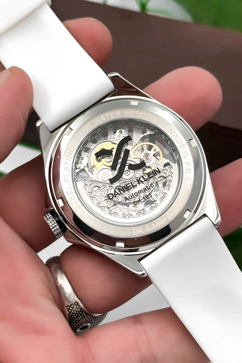Daniel Klein Erkek Kol Saati, zamanı sadece ölçmekle kalmayan, aynı zamanda şıklığınızı tamamlayan özel bir aksesuardır. Otomatik mekanizması sayesinde pil değişimine ihtiyaç duymadan uzun yıllar güvenilir kullanım imkânı sunar. İskelet görünümlü kadranı, modern çizgilerle harmanlanmış estetik detaylarıyla dikkat çekerken, şeffaf arka kapak sayesinde mekanizmanın zarif işleyişini izleme keyfi sağlar.