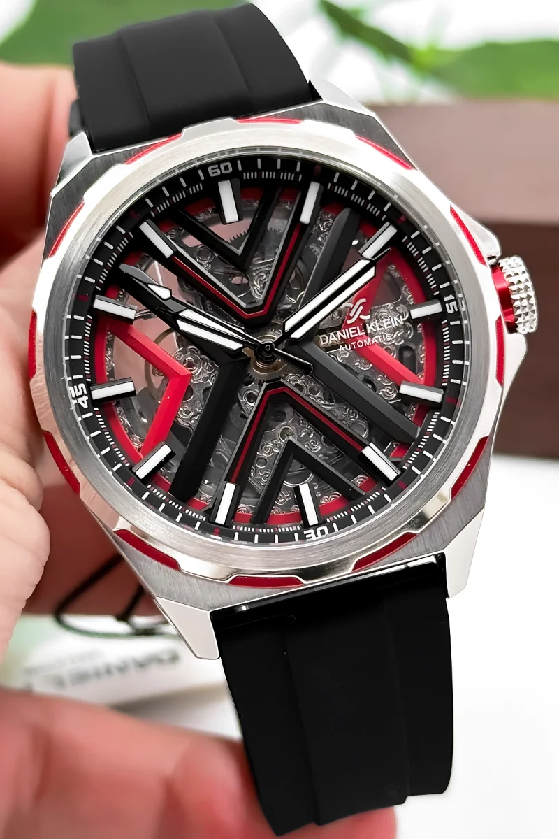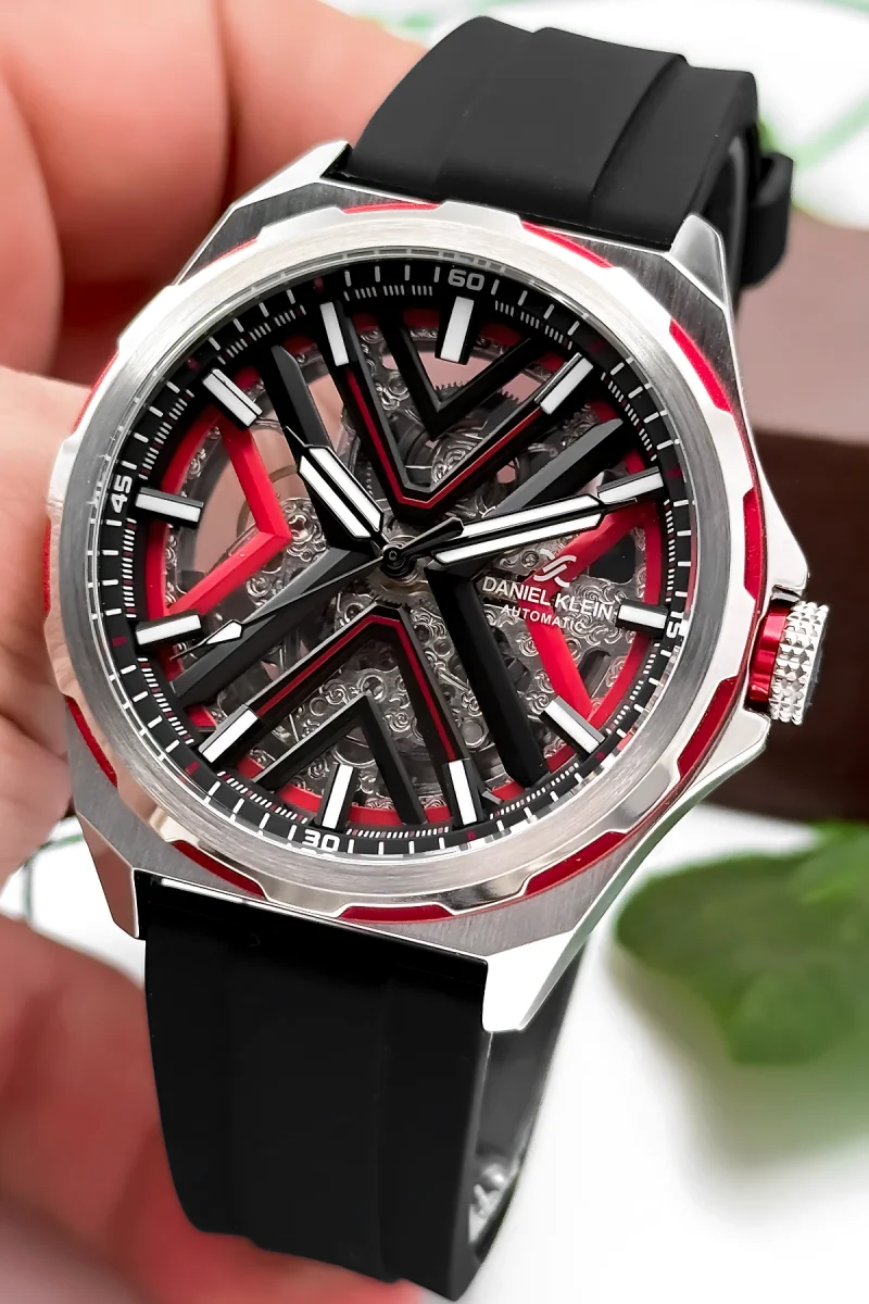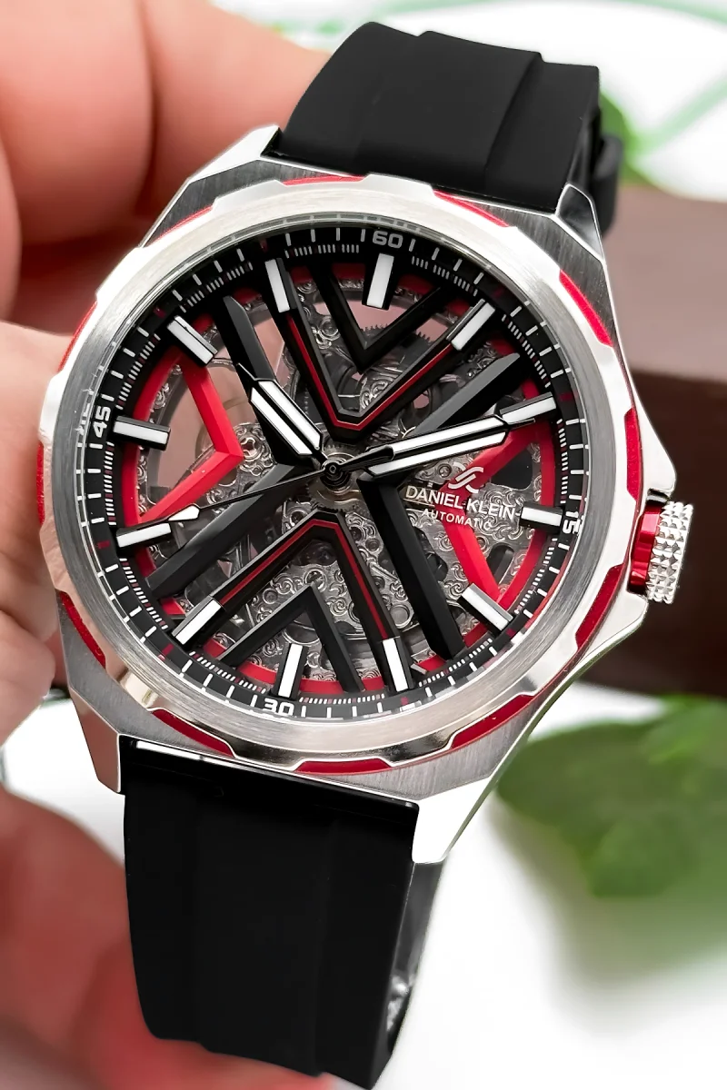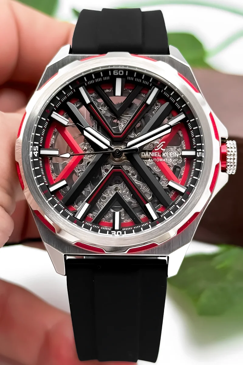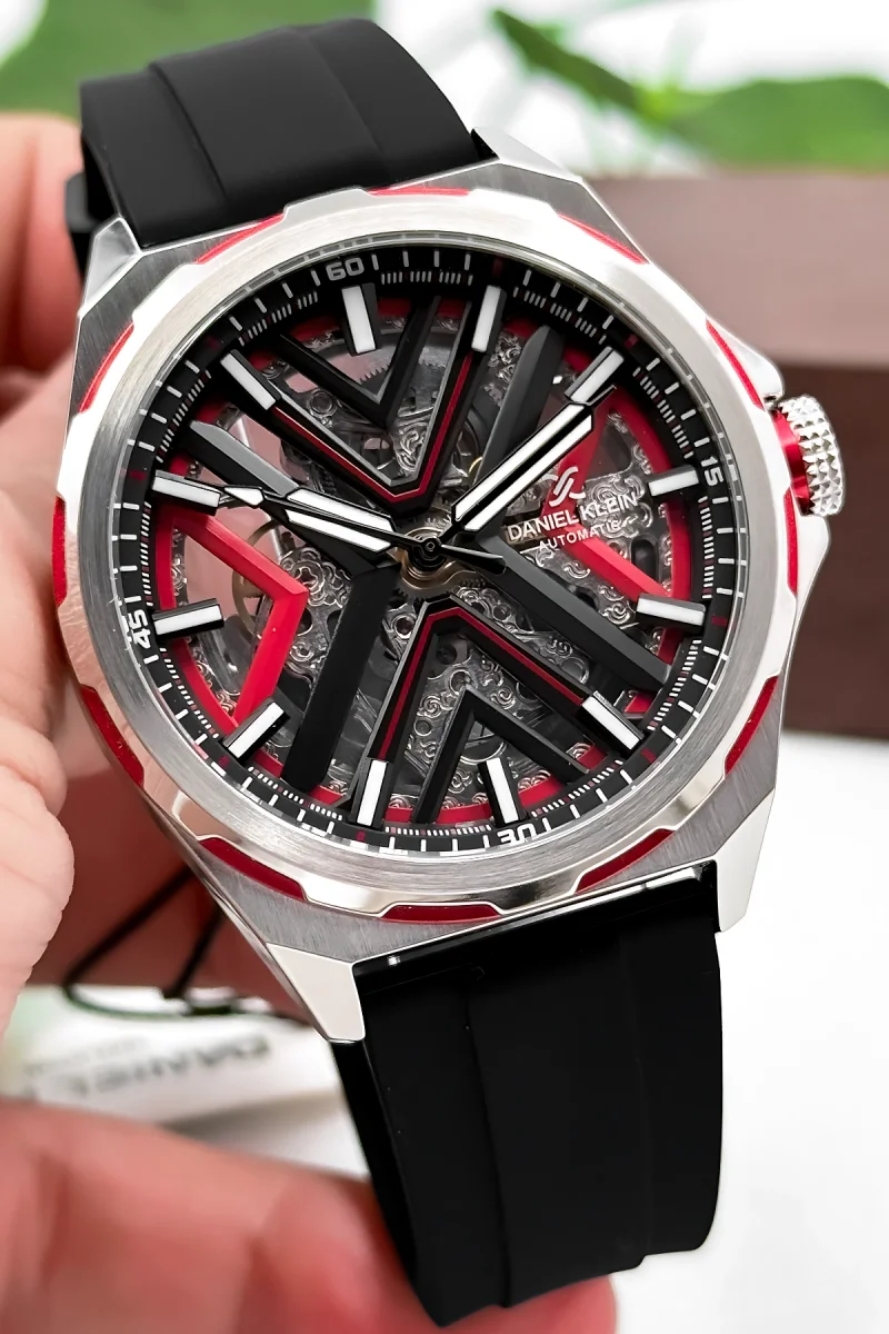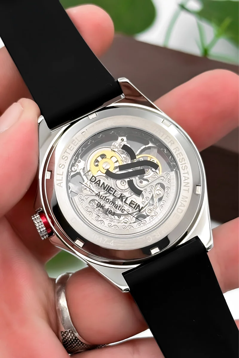 Daniel Klein Otomatik Mekanizma Silikon Kordon Çelik Kasa Erkek Kol Saati Siyah-Kırmızı zmdk1193