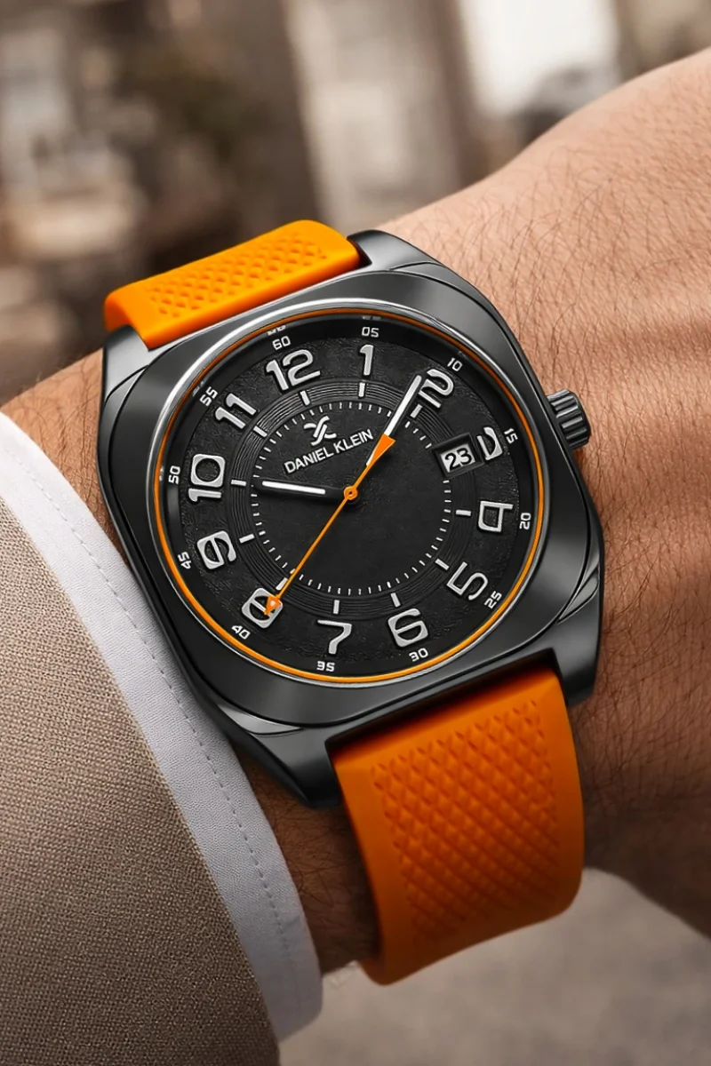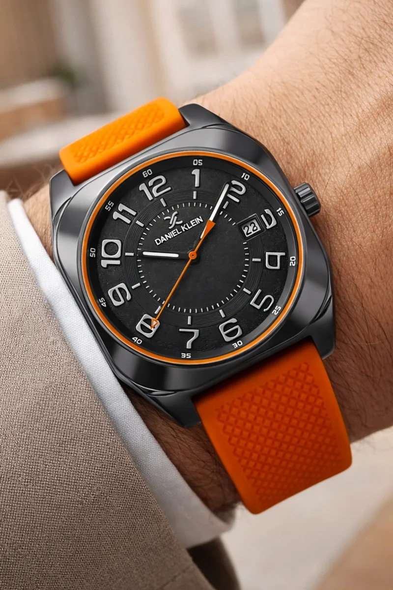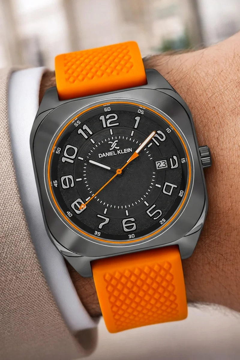 Daniel Klein Silikon Kordon Çelik Kasa Takvimli Erkek Kol Saati Bileklik Hediyeli Turuncu zmdk1216