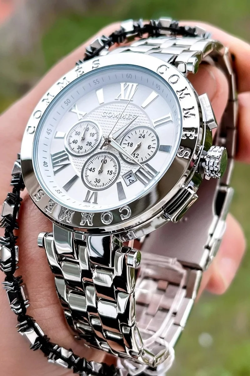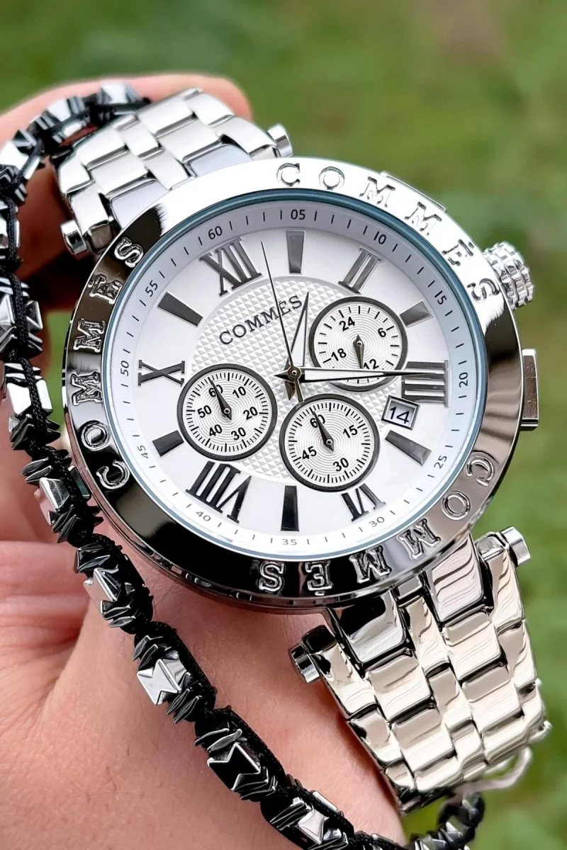 Commes Erkek Kol Saati Crono Fonksiyonlar Aktif Gümüş Renk ,Bileklik Hediyesi ile zmcms010