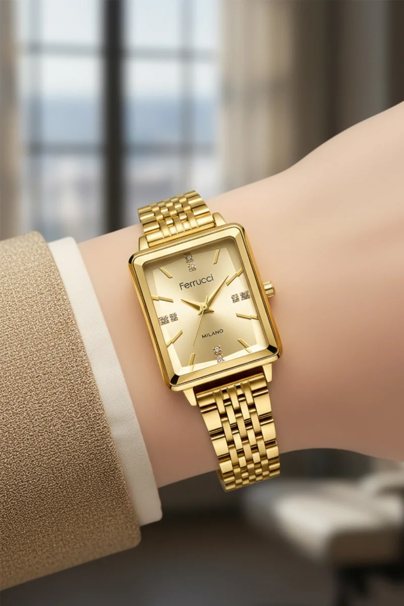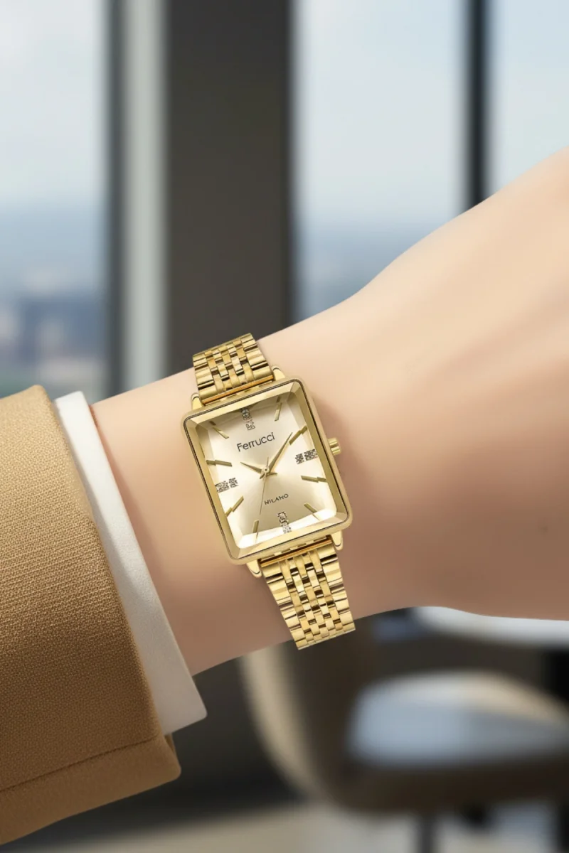 Ferrucci Çelik Kordon Çelik Kasa Kadın Kol Saati, 3 ATM Su Geçirmez Gold zmfer179