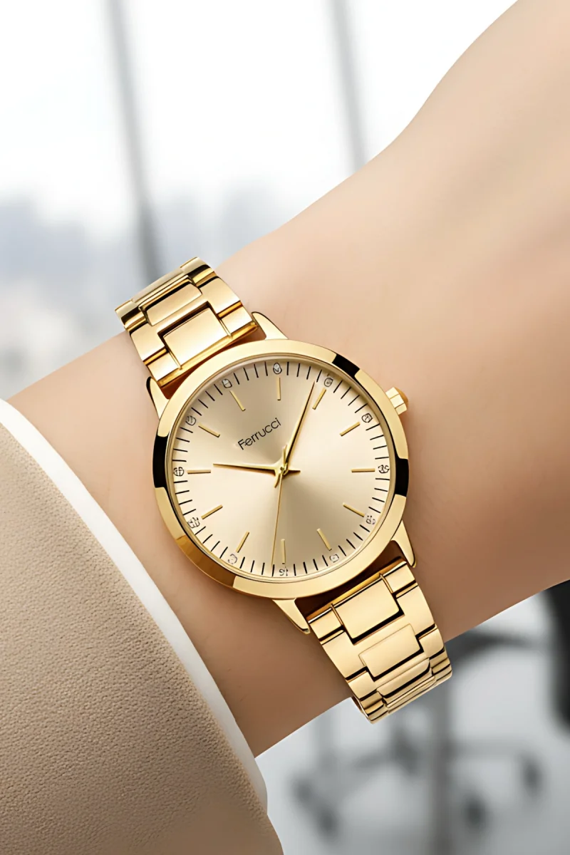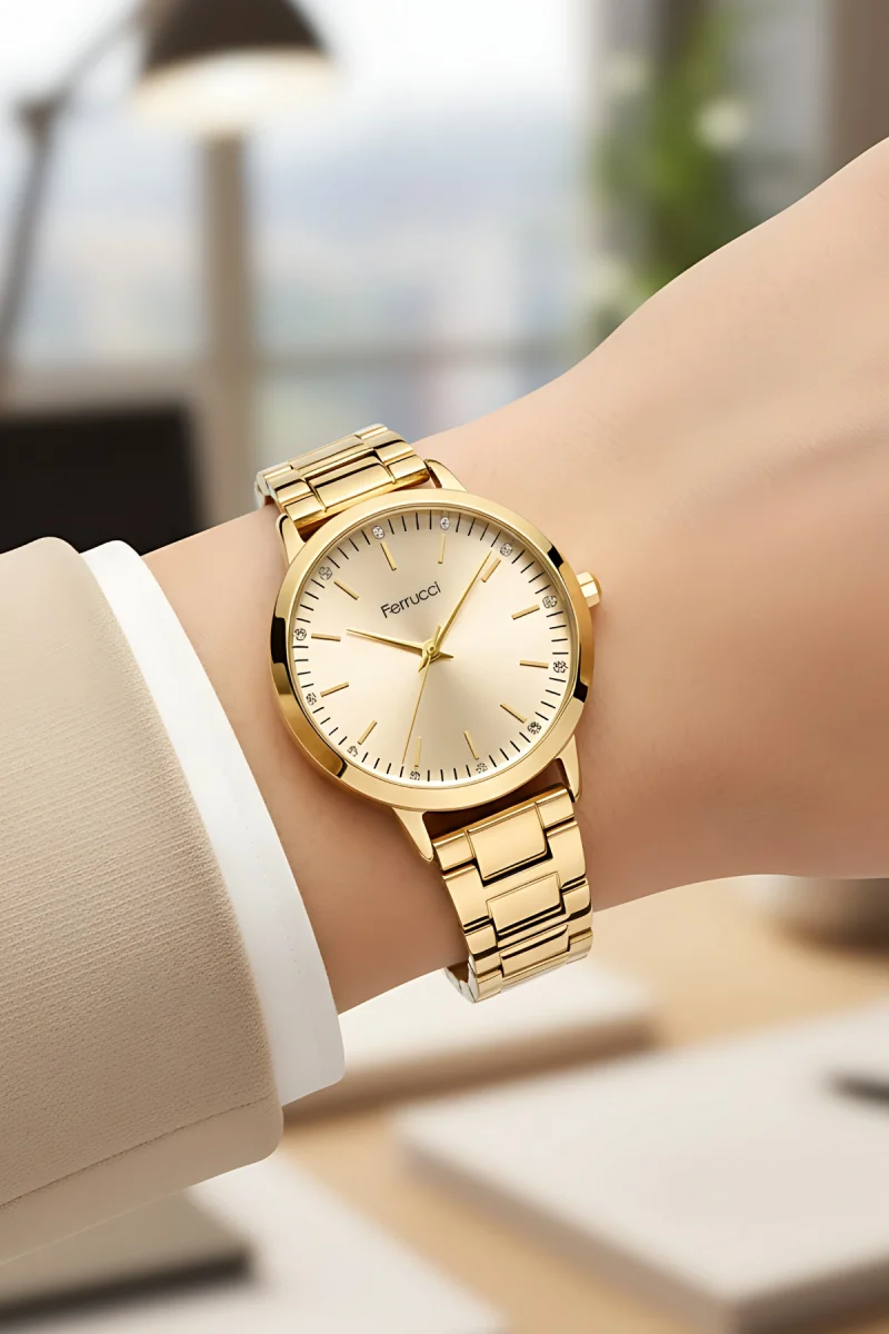 Ferrucci FC.13070M Çelik Kordon Çelik Kasa Kadın Kol Saati, Bileklik Hediye Gold zmfer201