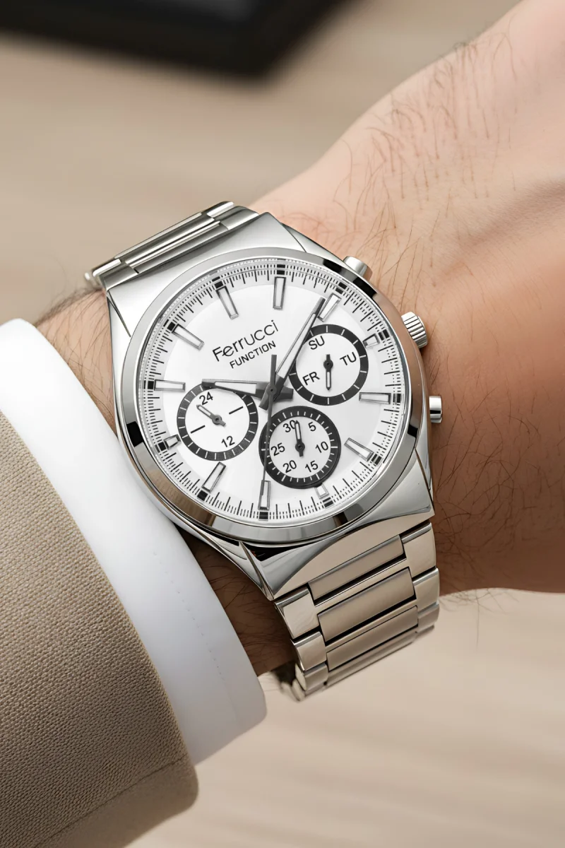 Ferrucci Function Erkek Kol Saati Çelik Kasa & Çelik Kordon Gümüş-Beyaz zmfer217