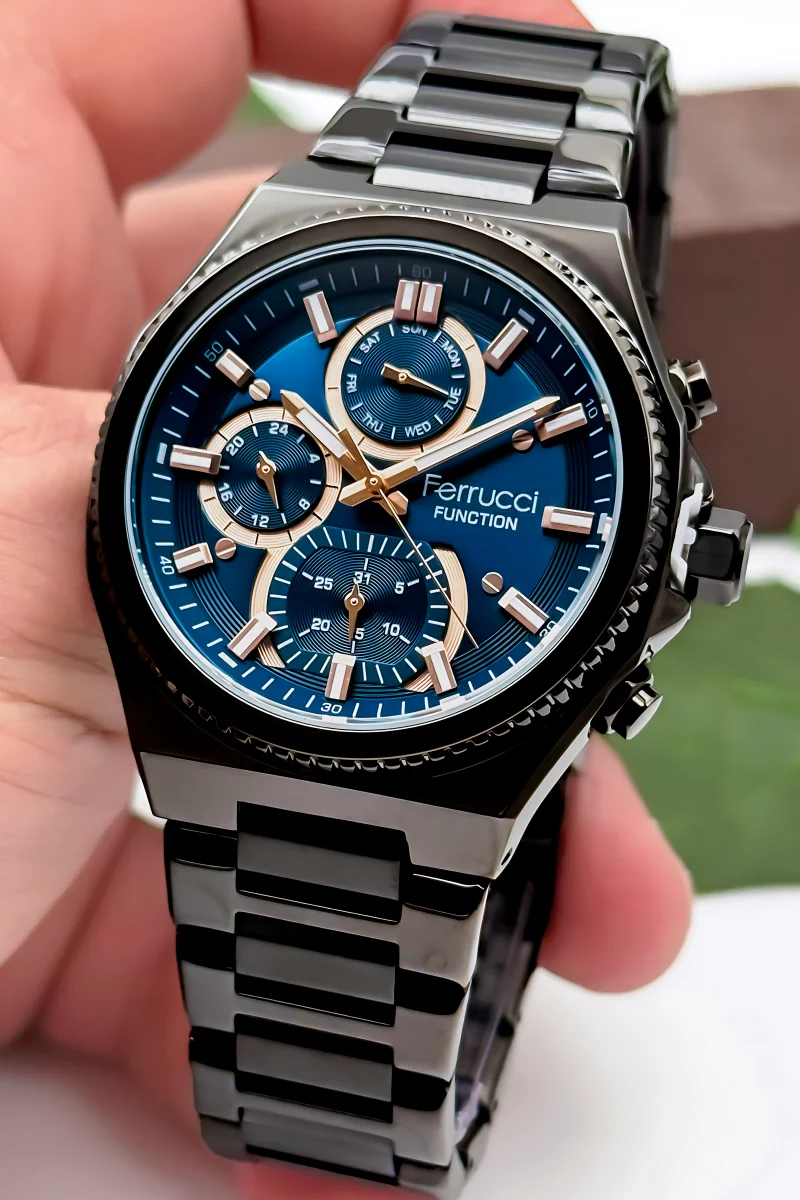 Şıklığı ve işlevselliği bir araya getiren bu özel tasarım Ferrucci erkek kol saati, modern erkeklerin vazgeçilmez aksesuarı olmaya aday. Gerek günlük kullanıma uygun yapısı, gerekse özel günlerde stilinizi tamamlayan duruşuyla öne çıkıyor. İşte detaylar: