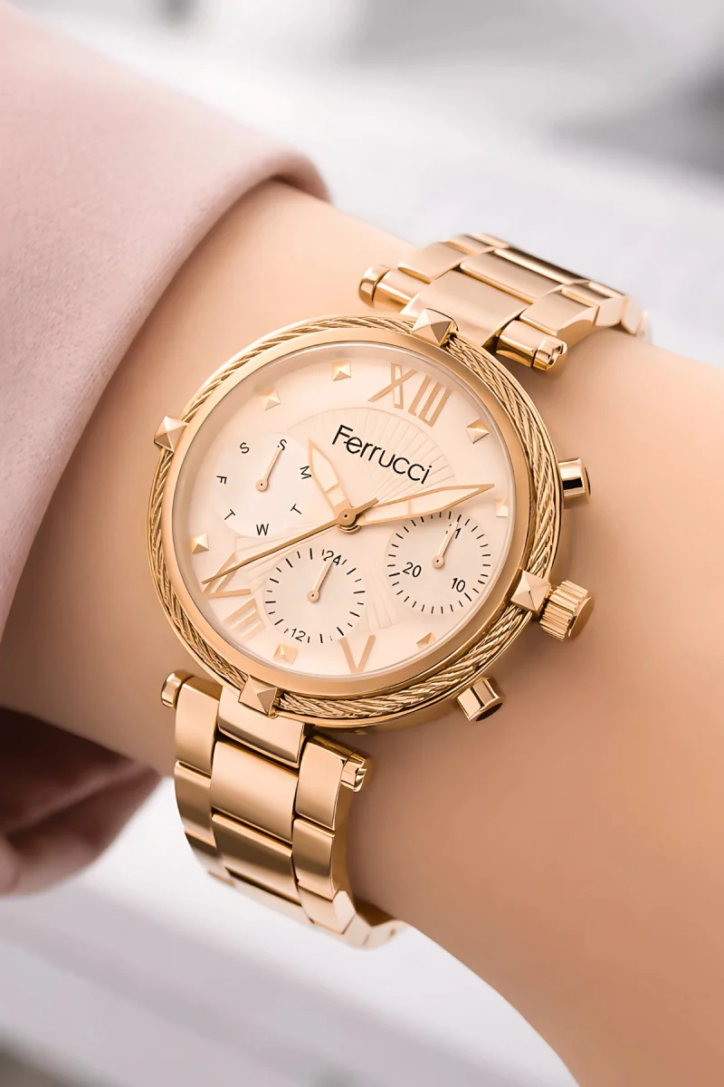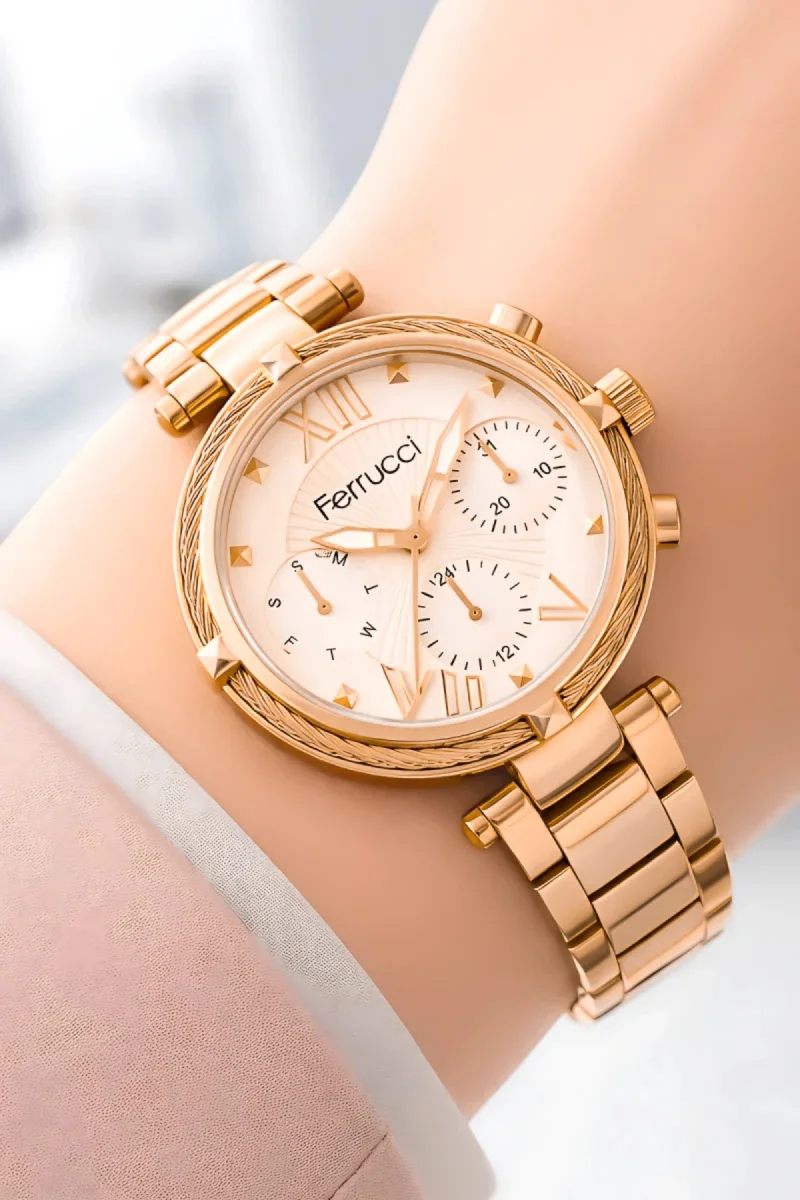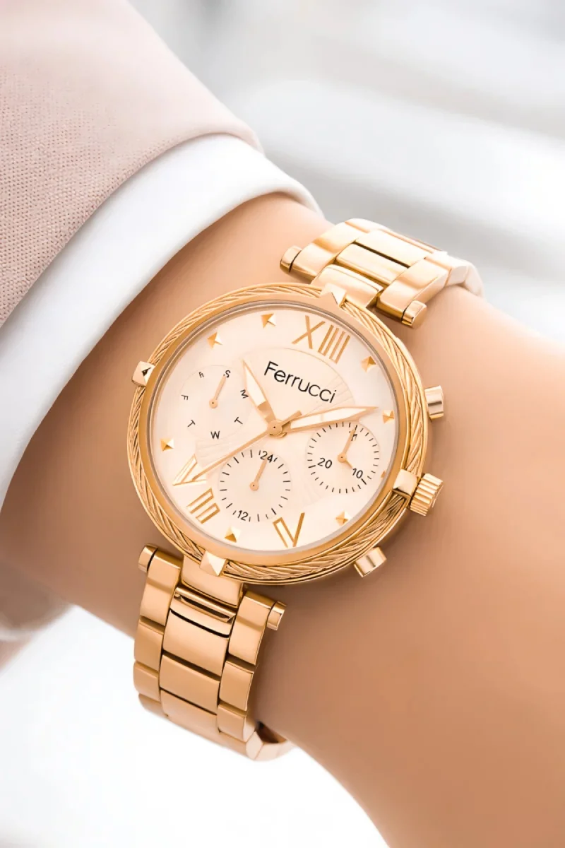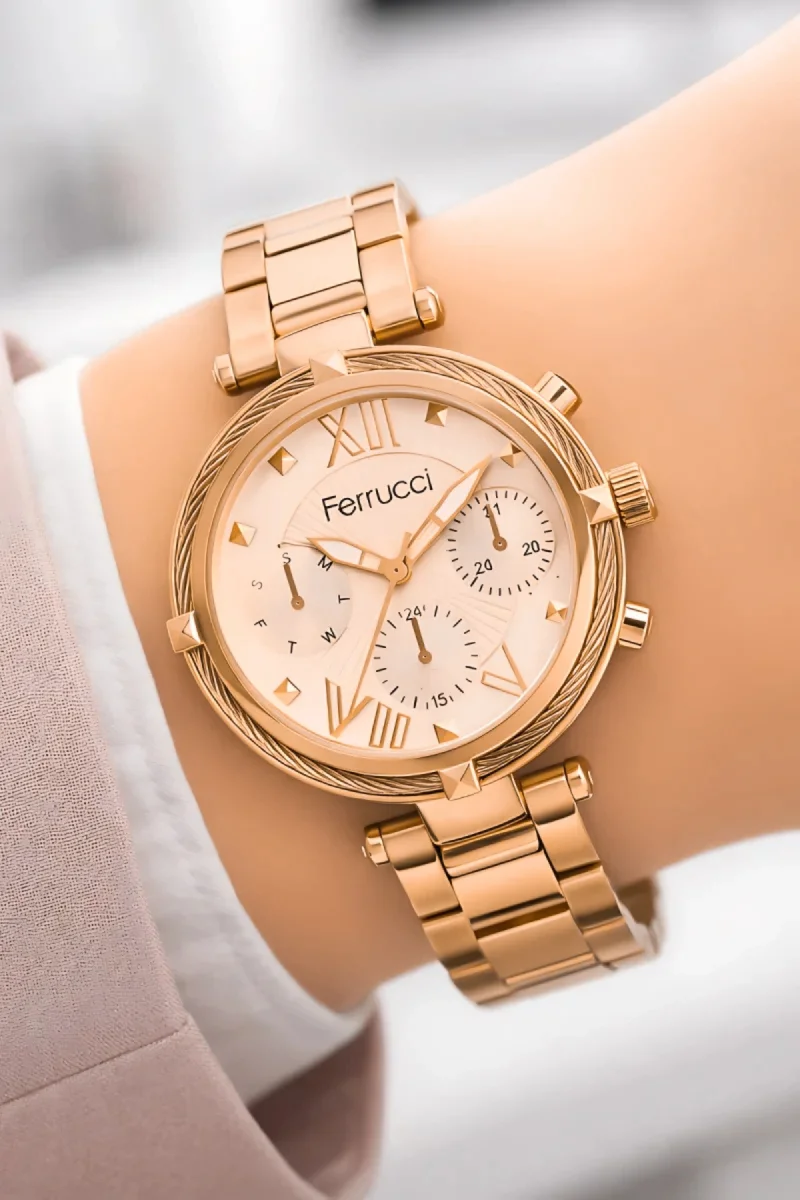 Unutmayın ki, bu saat bir zaman ölçerden daha fazlasıdır. Stilinizin bir ifadesi ve kişisel tarzınızın bir yansımasıdır. Ferrucci Kadın Kol Saati ile her anınızı mükemmel kılın ve tarzınızı vurgulayın."