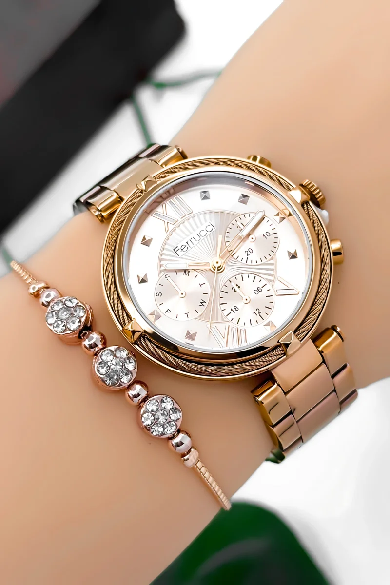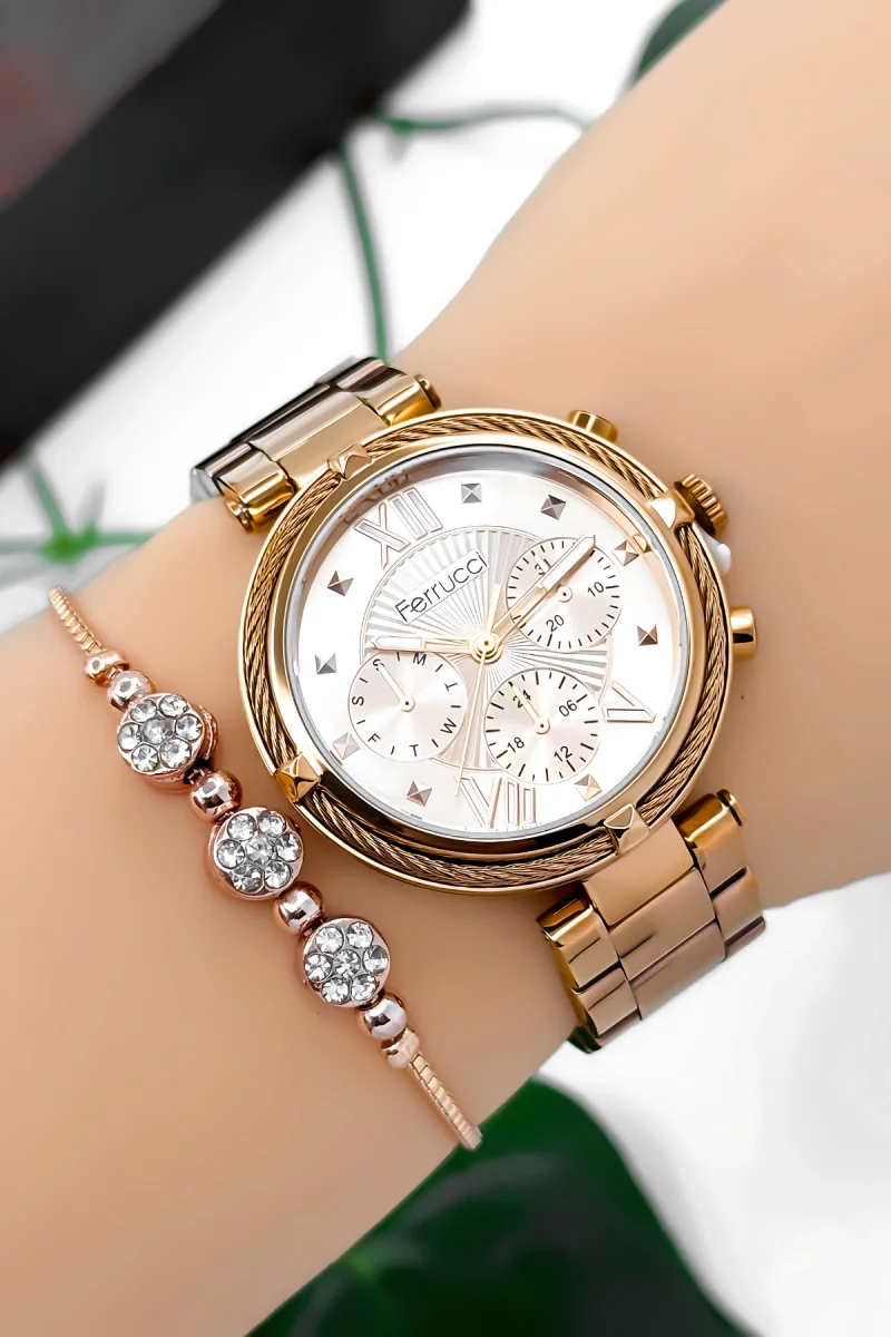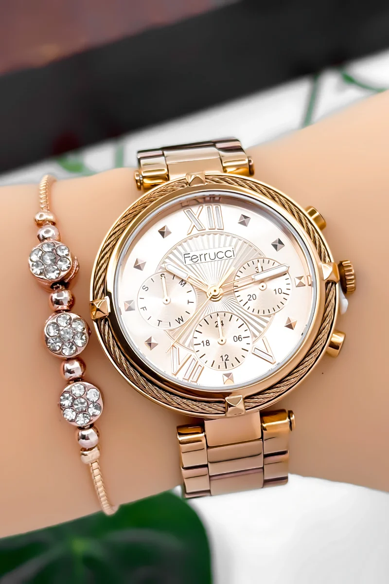 Ferrucci Kadın Kol Saati'nin zarafeti, stilinizi tamamlayacak ve herhangi bir durumda öne çıkmanızı sağlayacaktır. Yuvarlak kadran şekli ve çelik malzeme, her kıyafetle uyum sağlar ve her anınızı daha özel hale getirir.