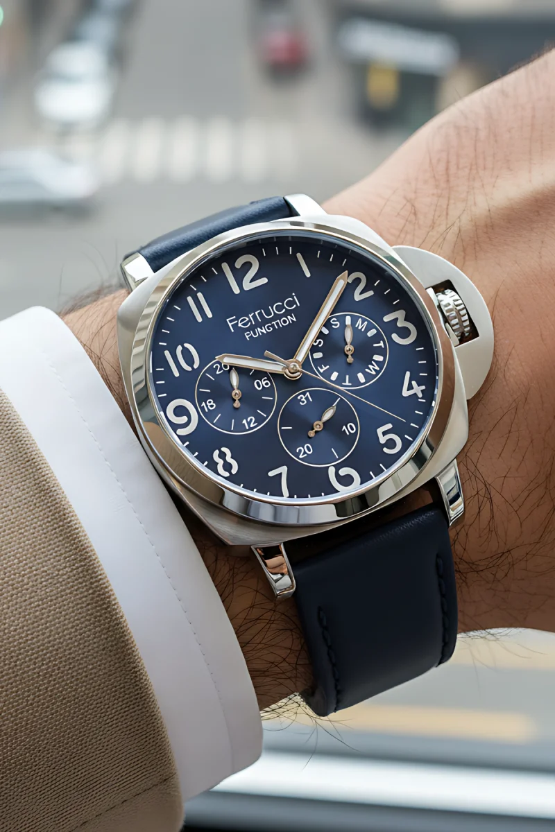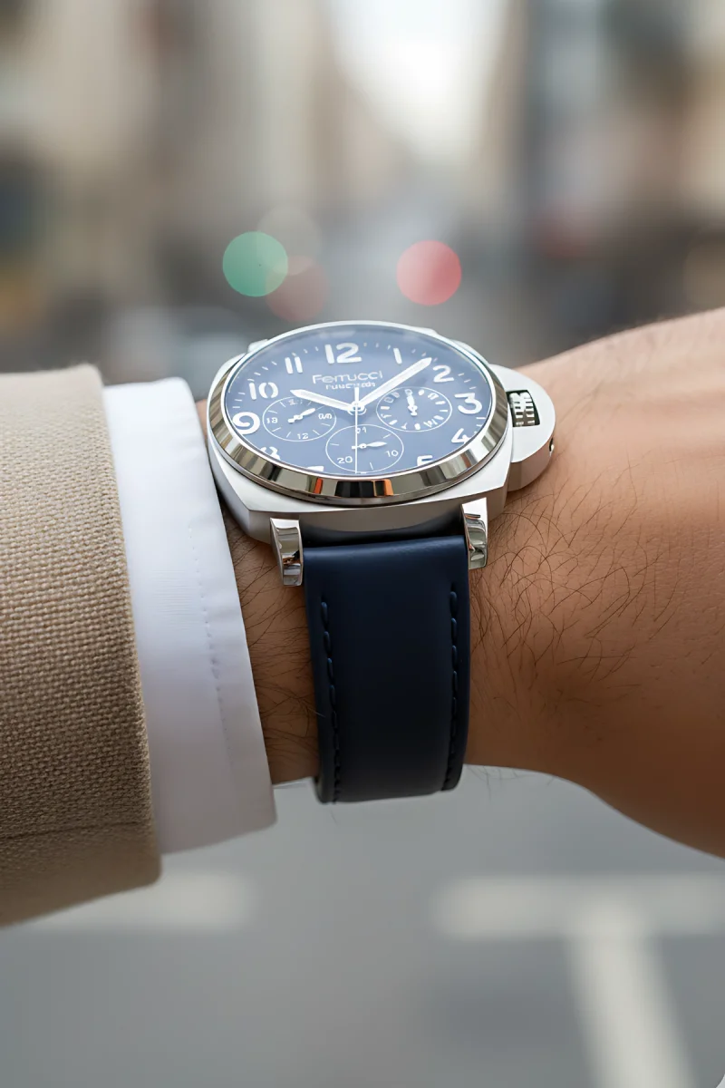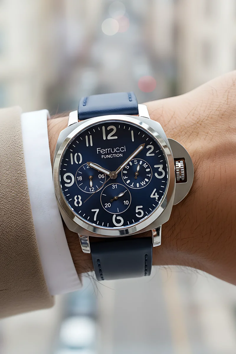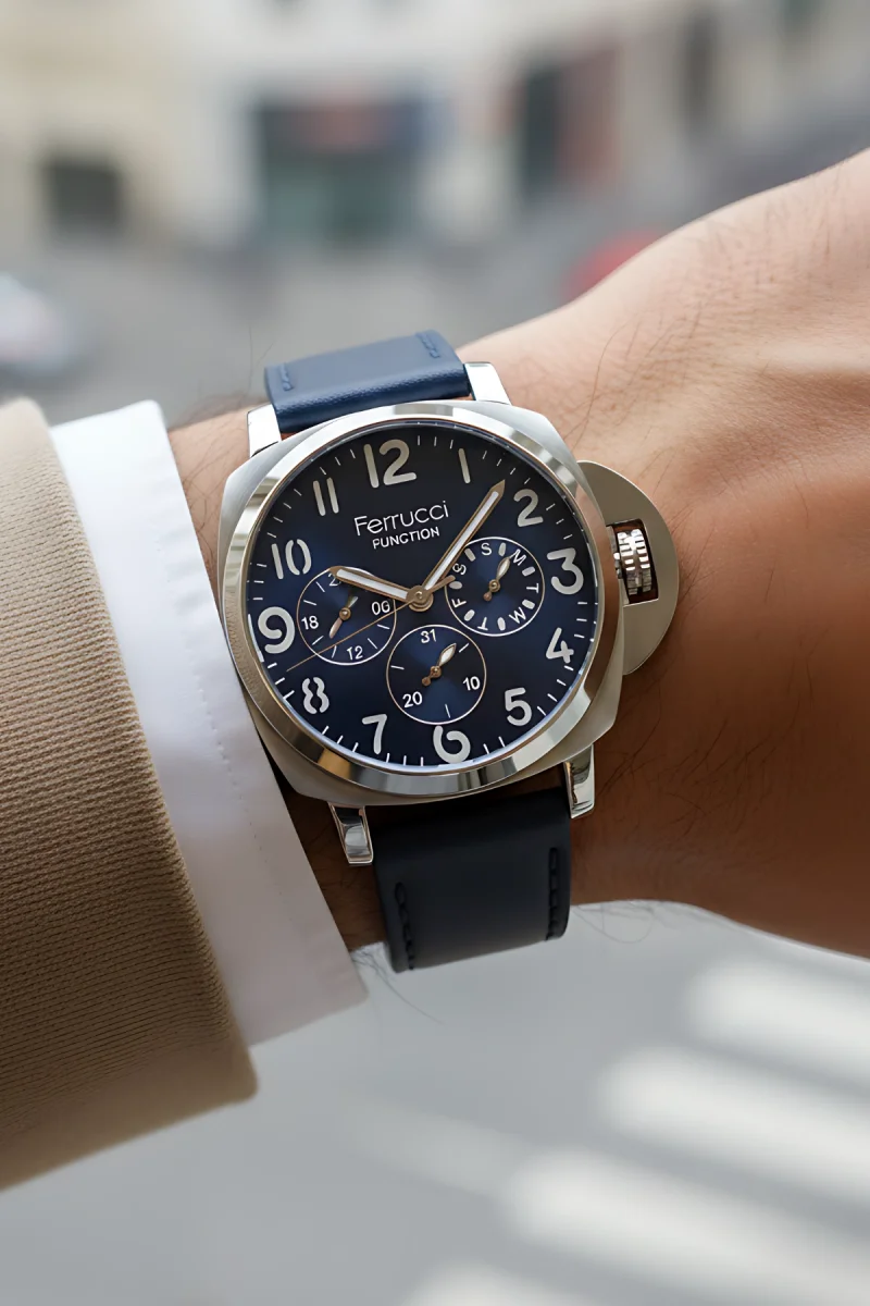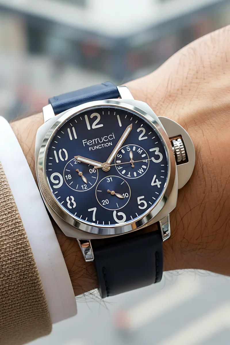 Ferrucci Lacivert Renk, Deri Kordon, Function Erkek Kol Saati+Bileklik zmfer158