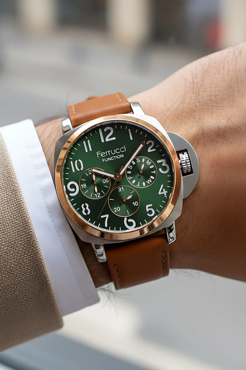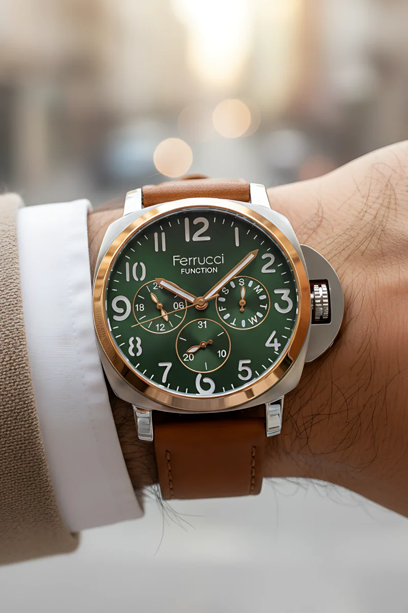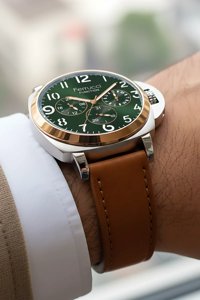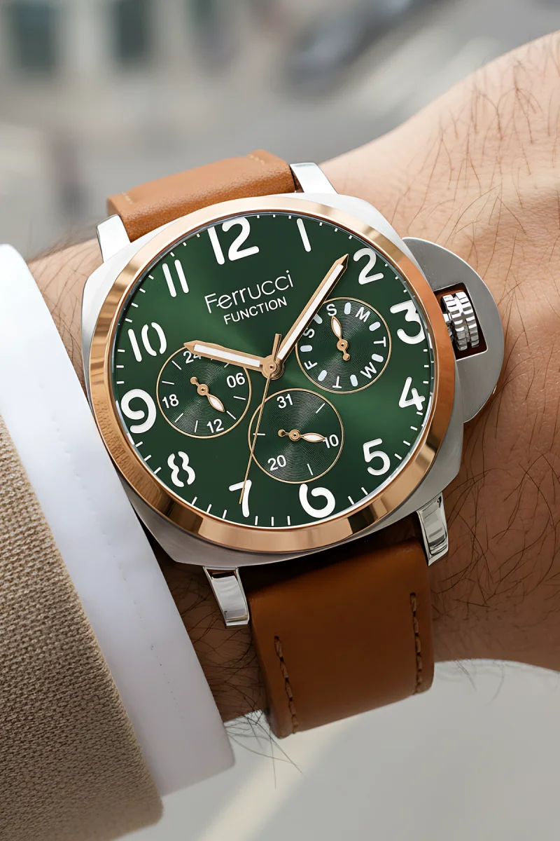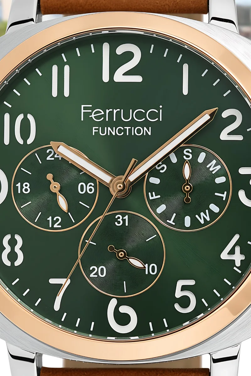 Ferrucci Taba Renk, Deri Kordon, Function Erkek Kol Saati+Bileklik zmfer158