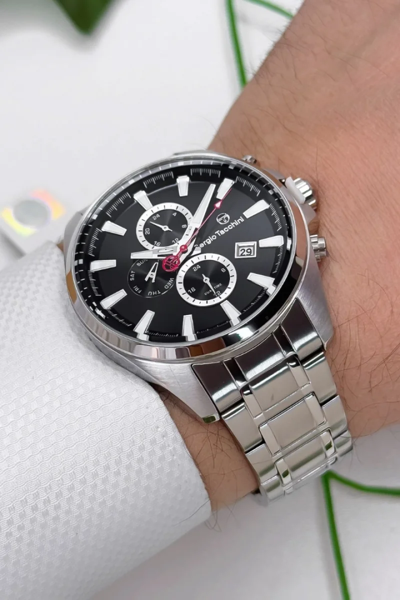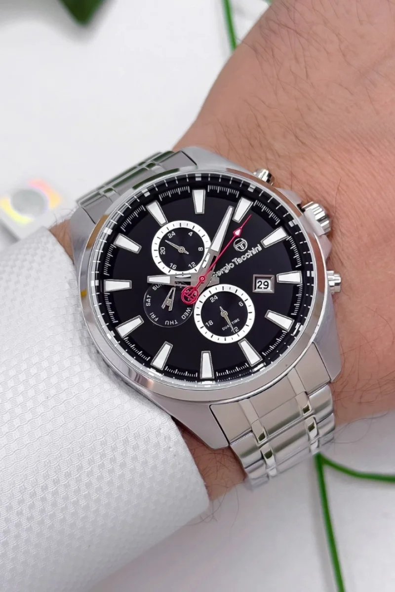Sergio Tacchini Çelik Kordon&Kasa Erkek Kol Saati Gümüş-Siyah ST.1.10167-2 zmst006