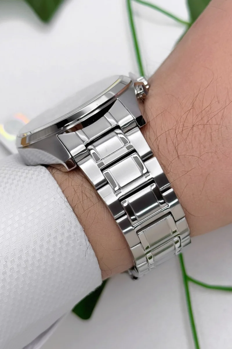 • Çelik Kordon ve Kasa: Darbelere ve çizilmelere karşı dayanıklı çelik malzeme, rahat ve konforlu kullanım sunarken maskülen bir görünüm kazandırıyor.